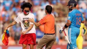 ଅହମଦାବାଦର ନରେନ୍ଦ୍ର ମୋଦି ଷ୍ଟାଡିୟମରେ ଫାଇନାଲ ମ୍ୟାଚ ଚାଲିଥାଏ | ଏହି ସମୟରେ ବେନ ପଡ଼ିଆ ଭିତରକୁ ପଶିବା ସହ ବିରାଟ କୋହଲିଙ୍କ କାନ୍ଧରେ ହାତ ପକାଇଥିଲେ | ଏନେଇ କିଛି ସମୟ ପର୍ଯ୍ୟନ୍ତ ଖେଳ ବନ୍ଦ ରହିଥିଲା | ପରେ ତାଙ୍କୁ ପୋଲିସ ହେପାଜତକୁ ତାଙ୍କୁ ନିଆଯାଇଥିଲା | ତେବେ ଏହା ଗୁରୁପନ୍ତ ସିଂ ପନ୍ନୁ ଏବଂ ତାଙ୍କ ସଂଗଠନର ଏକ କୁଟ ଚକ୍ରାନ୍ତ ବୋଲି ଭାରତୀୟ ଗୁପ୍ତଚର ସୂତ୍ରରୁ ଜଣା ପଡ଼ିଥିବା କୁହାଯାଉଛି | ଭାରତରେ ଗୁରୁବନ୍ତ ସିଂ ପନ୍ନୁଙ୍କୁ ଆତଙ୍କବାଦୀଭାବେ ଘୋଷଣା କରାଯାଇଛି | ସେ ଏବେ କାନାଡ଼ାରେ ରହୁଥିବା ବେଳେ ଭାରତକୁ ହରାଇବା ପାଇଁ ଜାଣିଶୁଣି ଏଭଳି କାଣ୍ଡ ଭିଆଉଥିବା କୁହାଯାଉଛି |